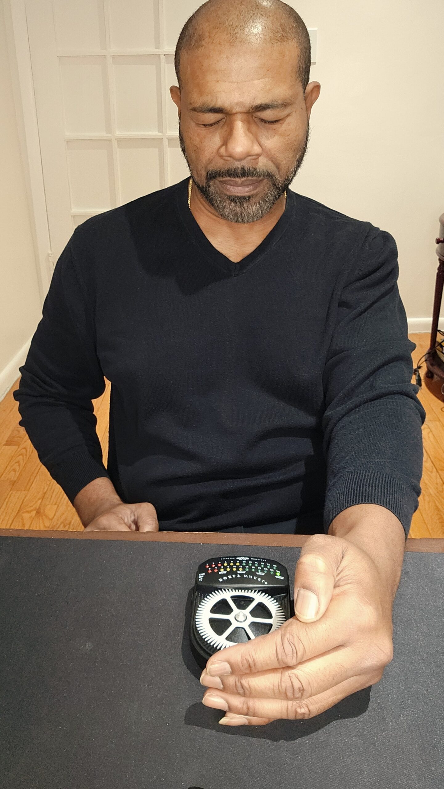 I experiment with different hand positions to increase the speed of the wheel and intentionally change its direction. By adjusting distance, angle, and focused intention, I can guide stronger rotation and directional shifts without touching the device. This has helped me refine directional control and precision in my telekinesis practice rather than focusing only on basic movement.